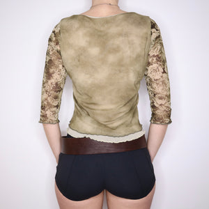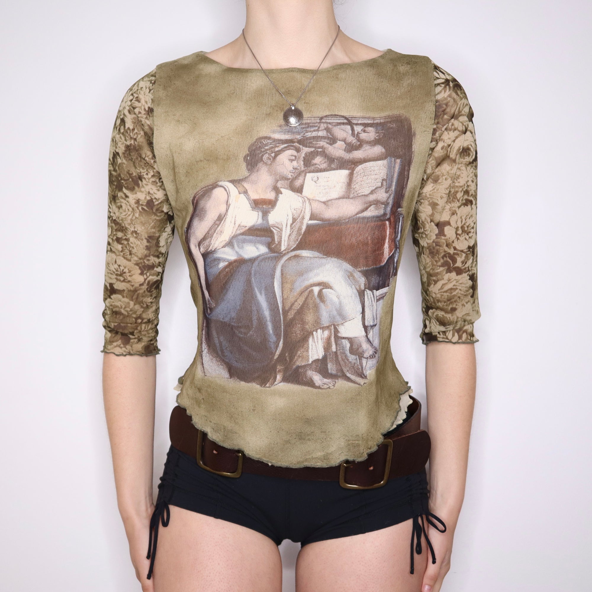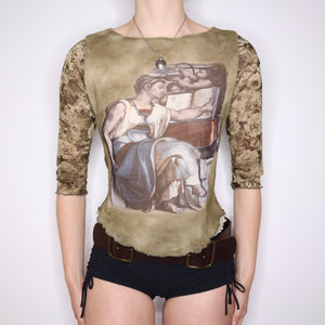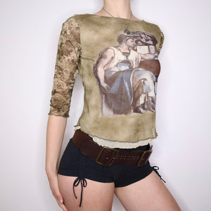 90s French Renaissance Graphic Mesh Top (M/L)