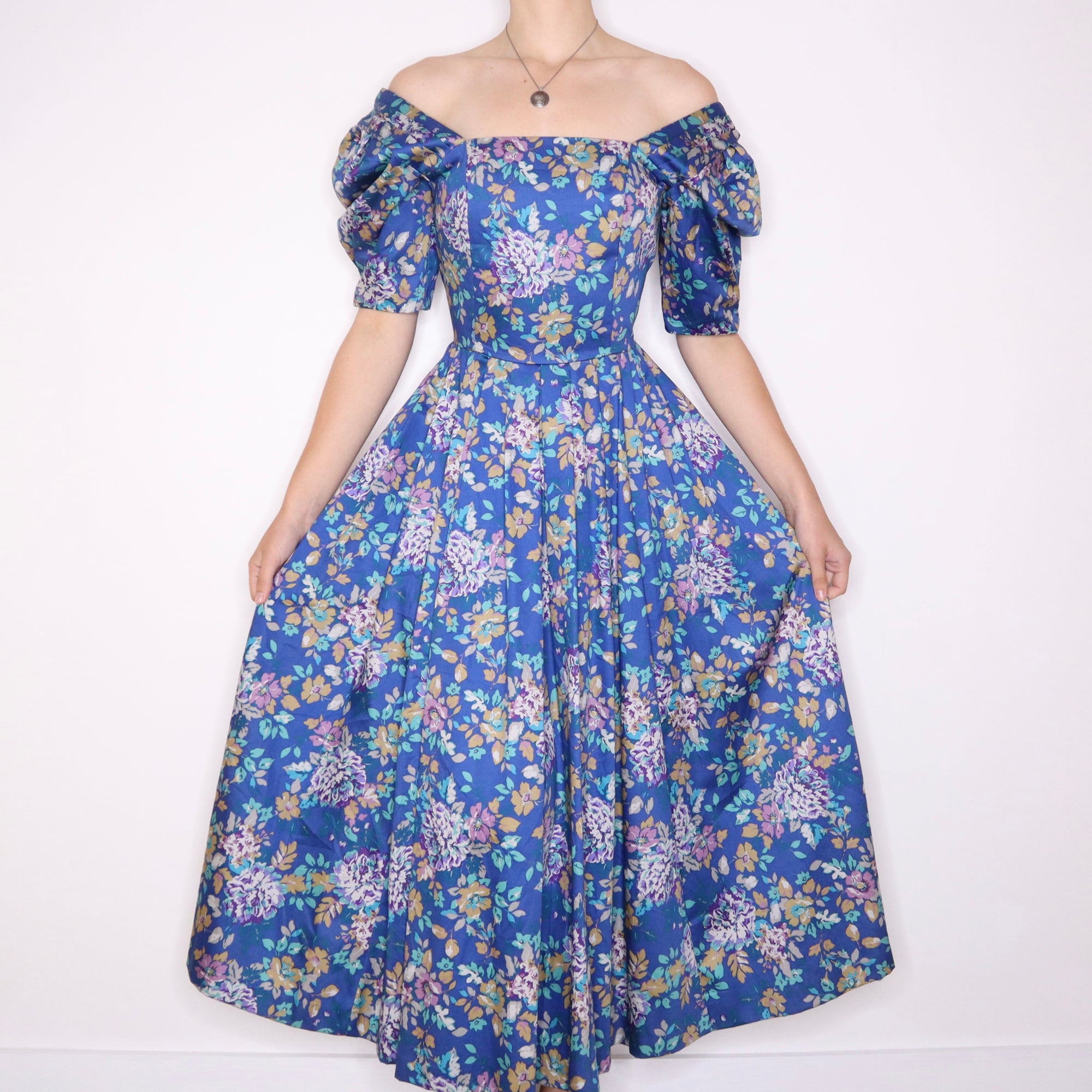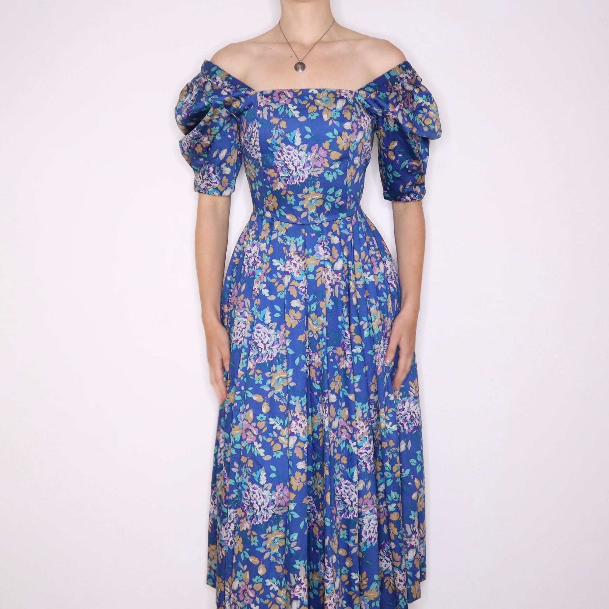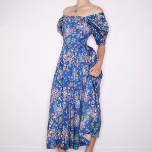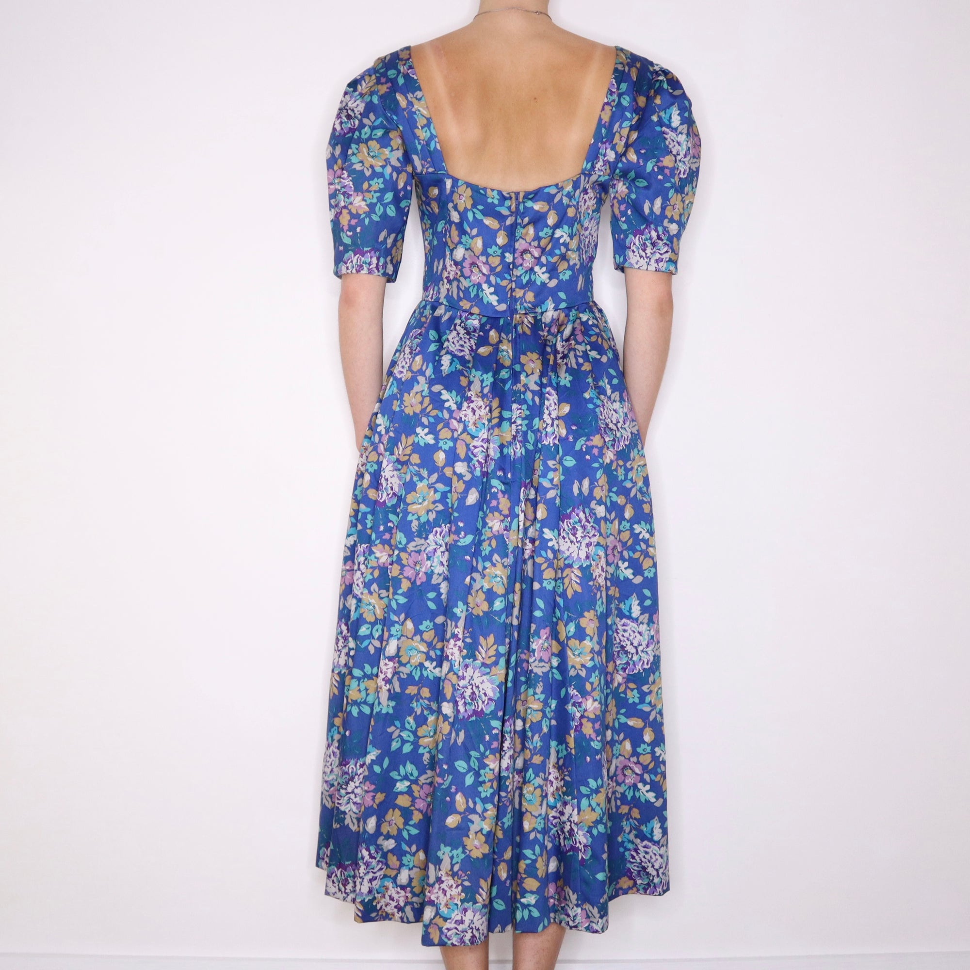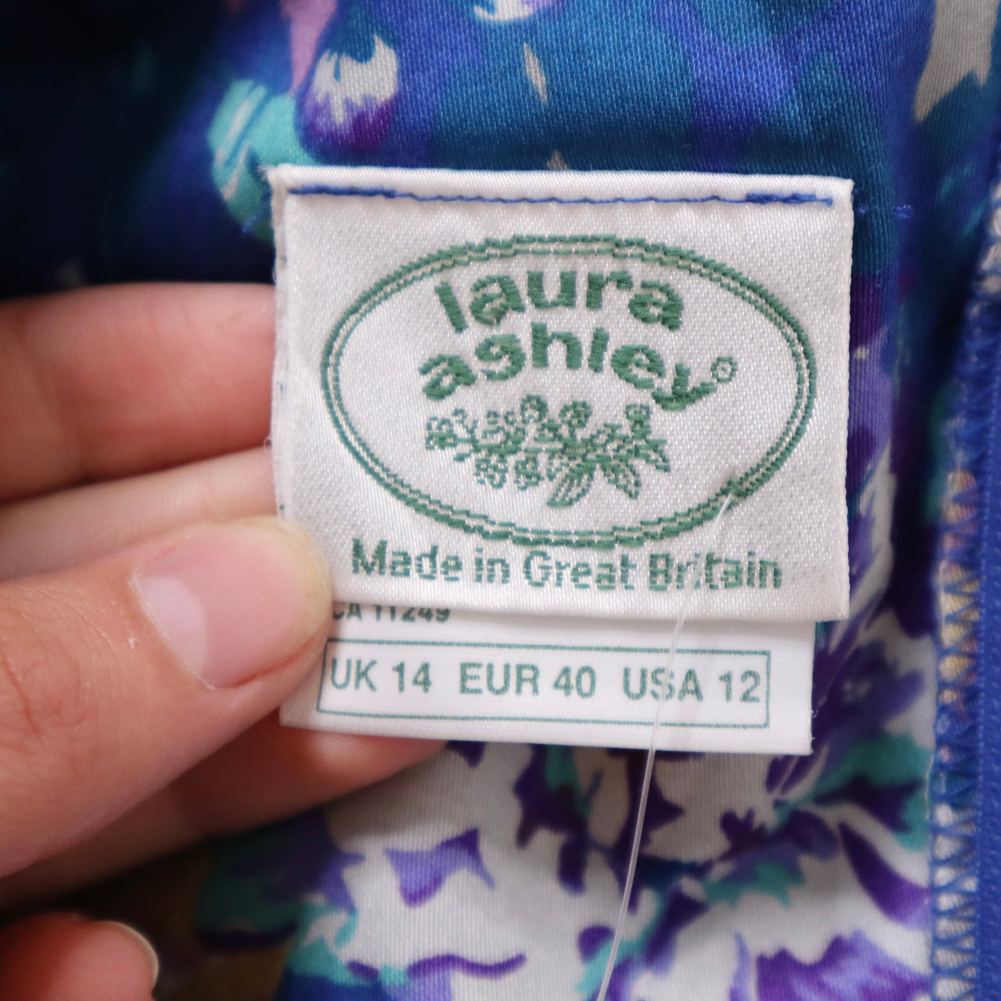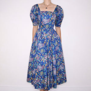 90s LAURA ASHLEY Blue Floral Maxi Dress (M)