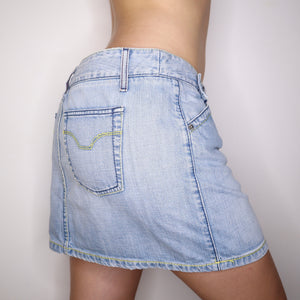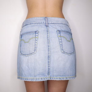 Model is 5’9” and a size S to M. This skirt fits loose on her.