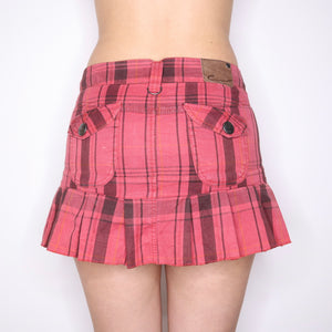 Y2K Red Plaid Pleated Mini Skirt (S)