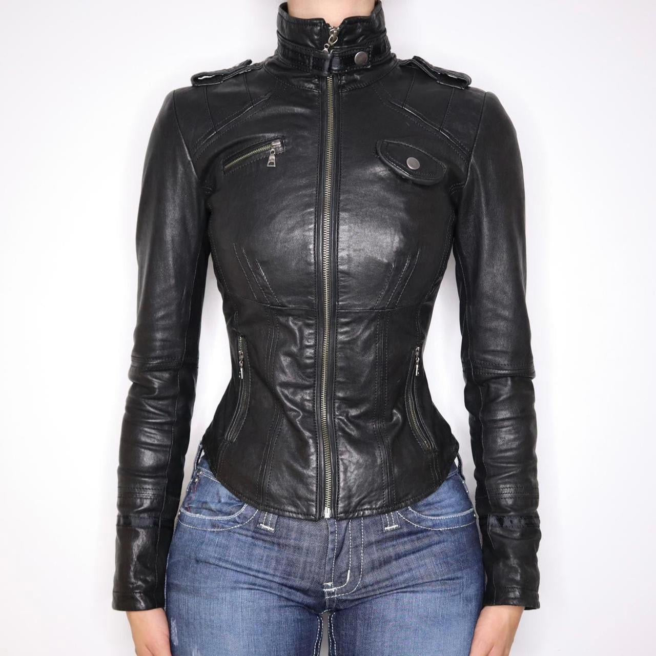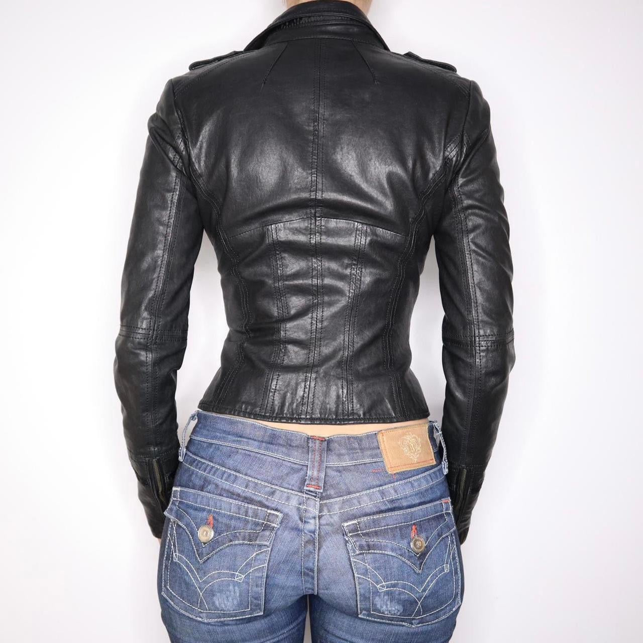 Y2K Sexy Black Italian Leather Moto Jacket (XS)