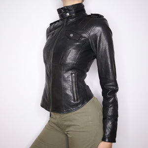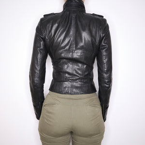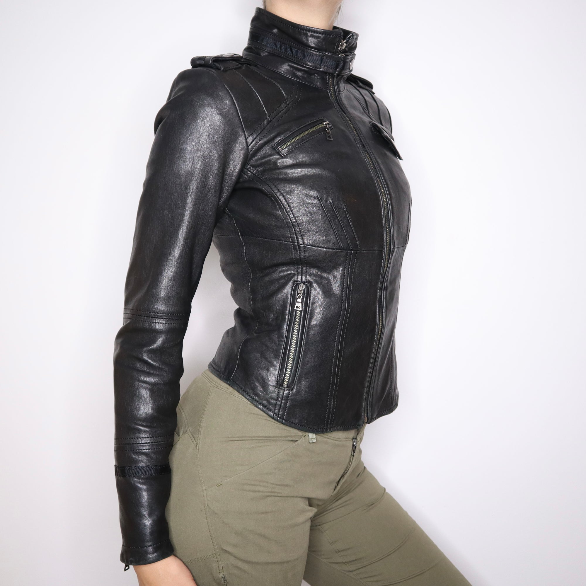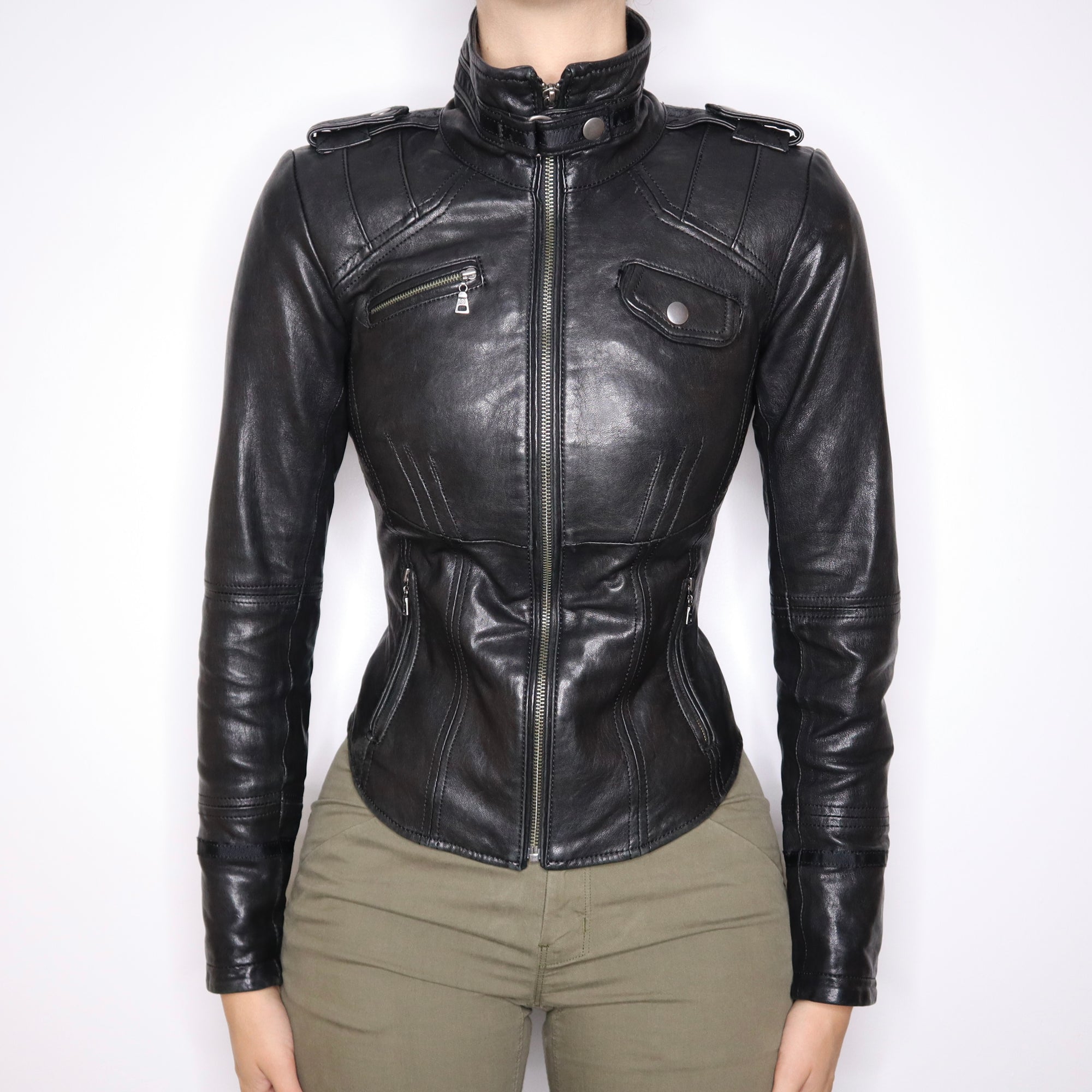 Y2K Sexy Black Italian Leather Moto Jacket (XXS)